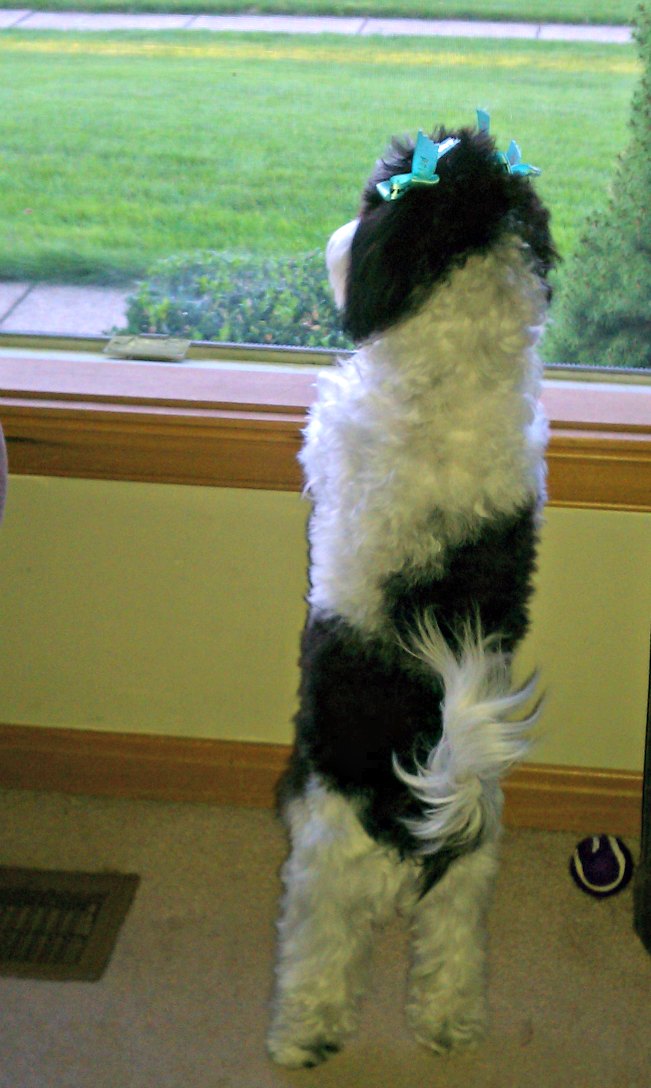 A room with a view gives her the option of distraction as she watches the world go by why she waits for your return. This does not work if she decides to chew, scratch or try and tear her way through the window. Sometimes being able to look out means that she will bark at everything in her range of sight which is not an ideal situation especially if you live in an apartment.